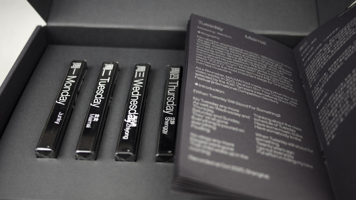 a week. The project is released in the form of cassette. What these artists have in common is that they are both a musician and an office worker. In other words, they only spend part of their time to create and the other half to work, and the content of their work is not directly related to music or sound art. The first reason why we focus on such a group is that this is the common situation of most artists in this field today, and it is somewhat representative. Secondly, it is also because life and art creation cannot be completely separated, and such artists tend to bring a more direct flavor of life into it. Thirdly, we hope to present some works that depart from the typical of the format type and constitute a unique aptness.